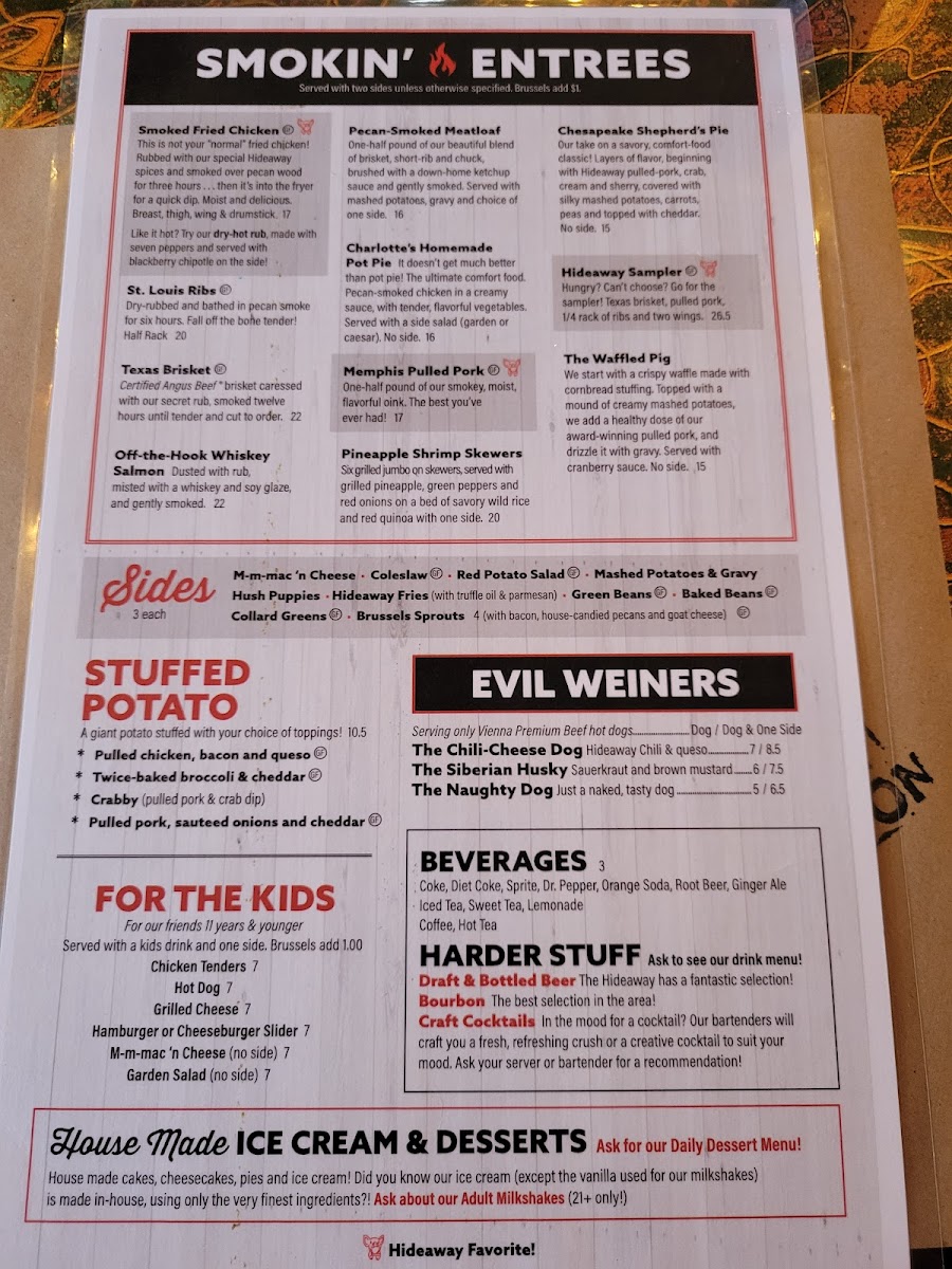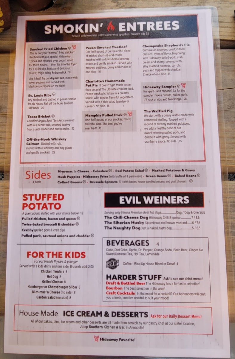 The Hideaway Menu (2025 Update)